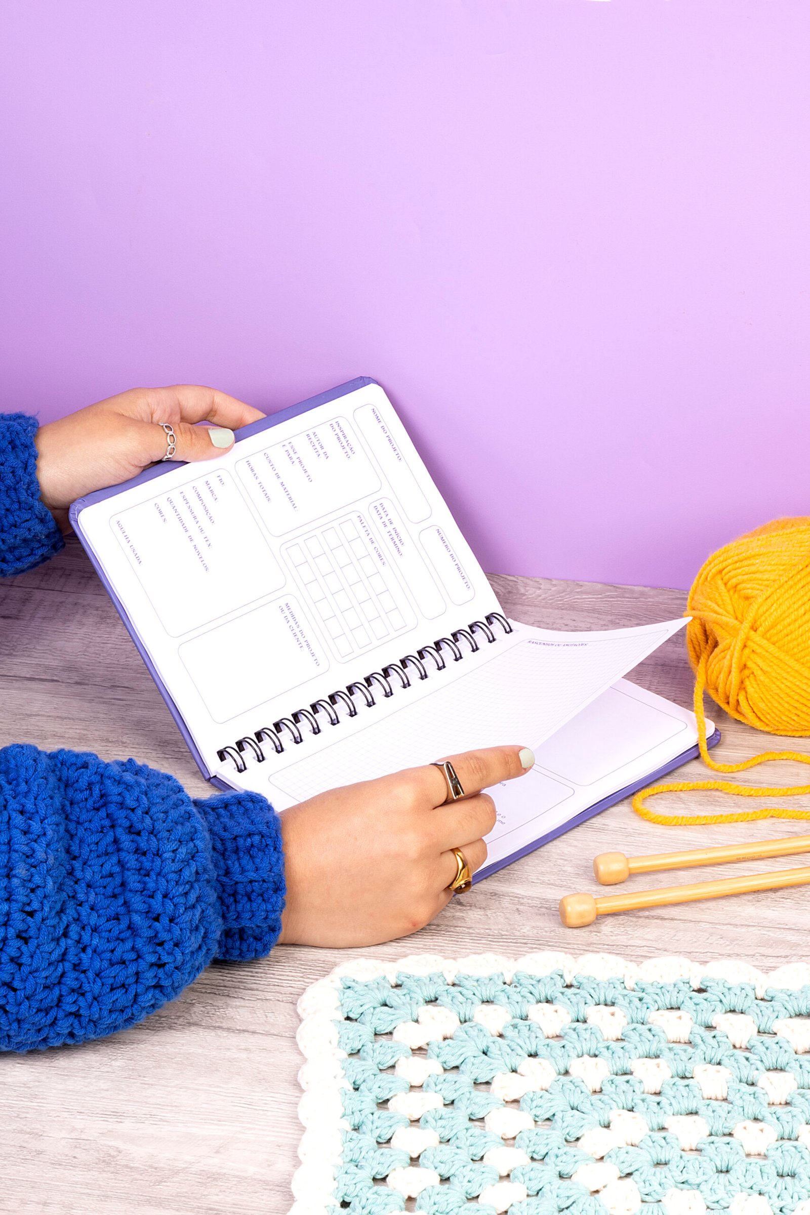 Organize e registre cada detalhe dos seus trabalhos manuais com um planner feito especialmente para projetos de crochê. Em formato compacto e prático, ele conta com 100 páginas para acompanhar até 23 projetos completos, do primeiro ponto ao acabamento final.